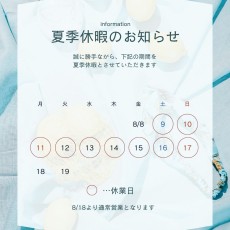 夏季休暇のお知らせ【問い合わせについてのご注意】2025.08.04