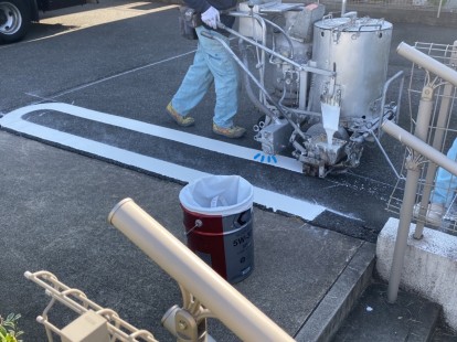 先日、薄くなってしまったアスファルトラインの復旧工事を行いました。