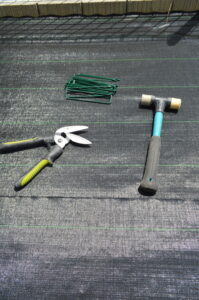 次に、防草シートのサイズを確認してカット。