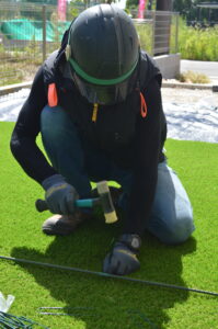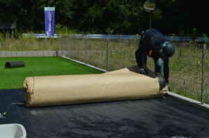 いよいよ人工芝を敷いていきます。