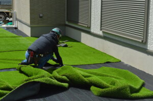 人工芝はスキマなくピッタリ密着させて敷き、