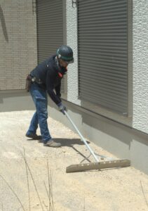 ↓下の写真は転圧・整地後、石コロ等を除去して平らにしています!