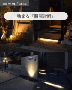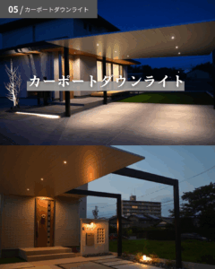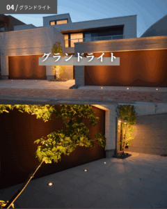 夜の外空間を立体的に演出し、洗練された雰囲気を生み出します。
