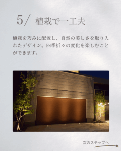 素材の選び方や照明の使い方、植栽の配置など、