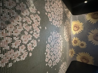 全て四角いタイルでできており、お花の花びらの形が不揃いになっていて、真ん中の色は強弱をつけることでさらにリアルに再現出来ていてすごいと思いました🌻✨